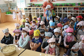 今日のてんしぐみは、「はろうぃんぱーてぃー」でした。衣装のデザインは、前もっておかあさん方に作って持ってきてもらいました。製作開始!みんな黙々と製作に集中しました。